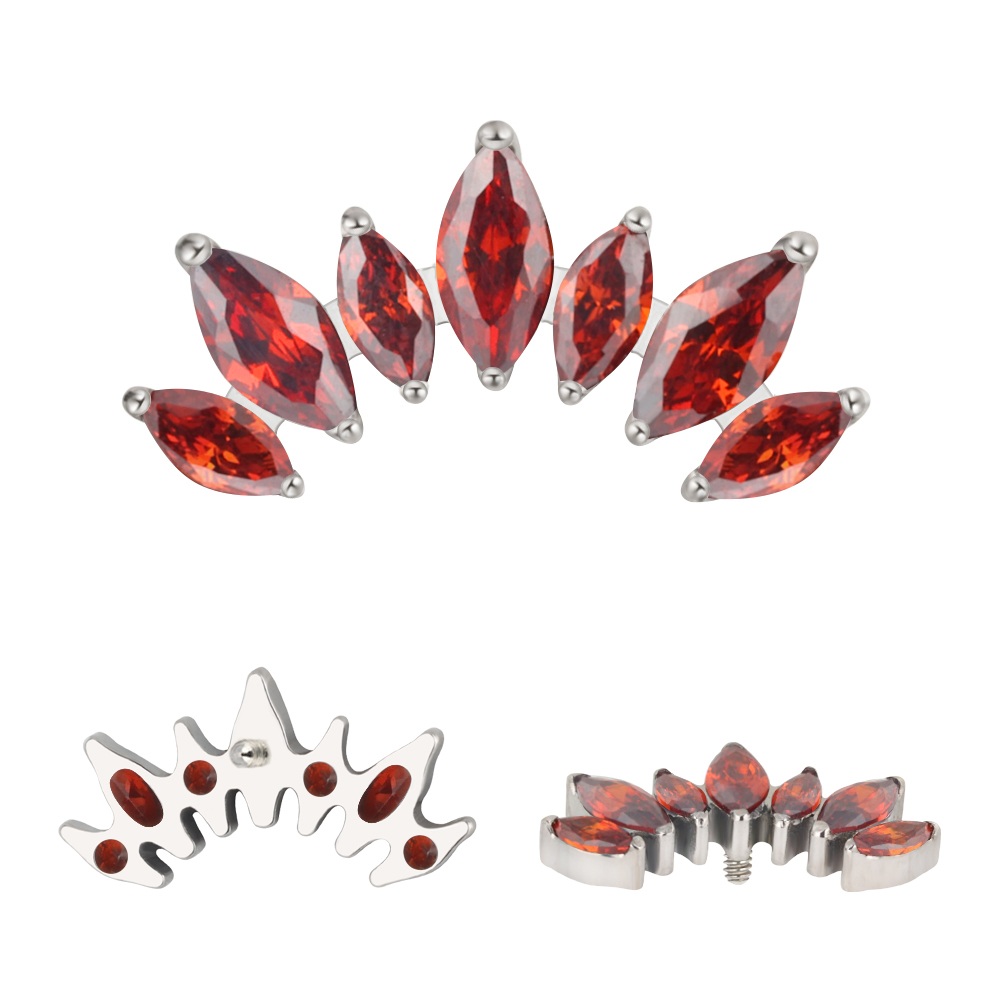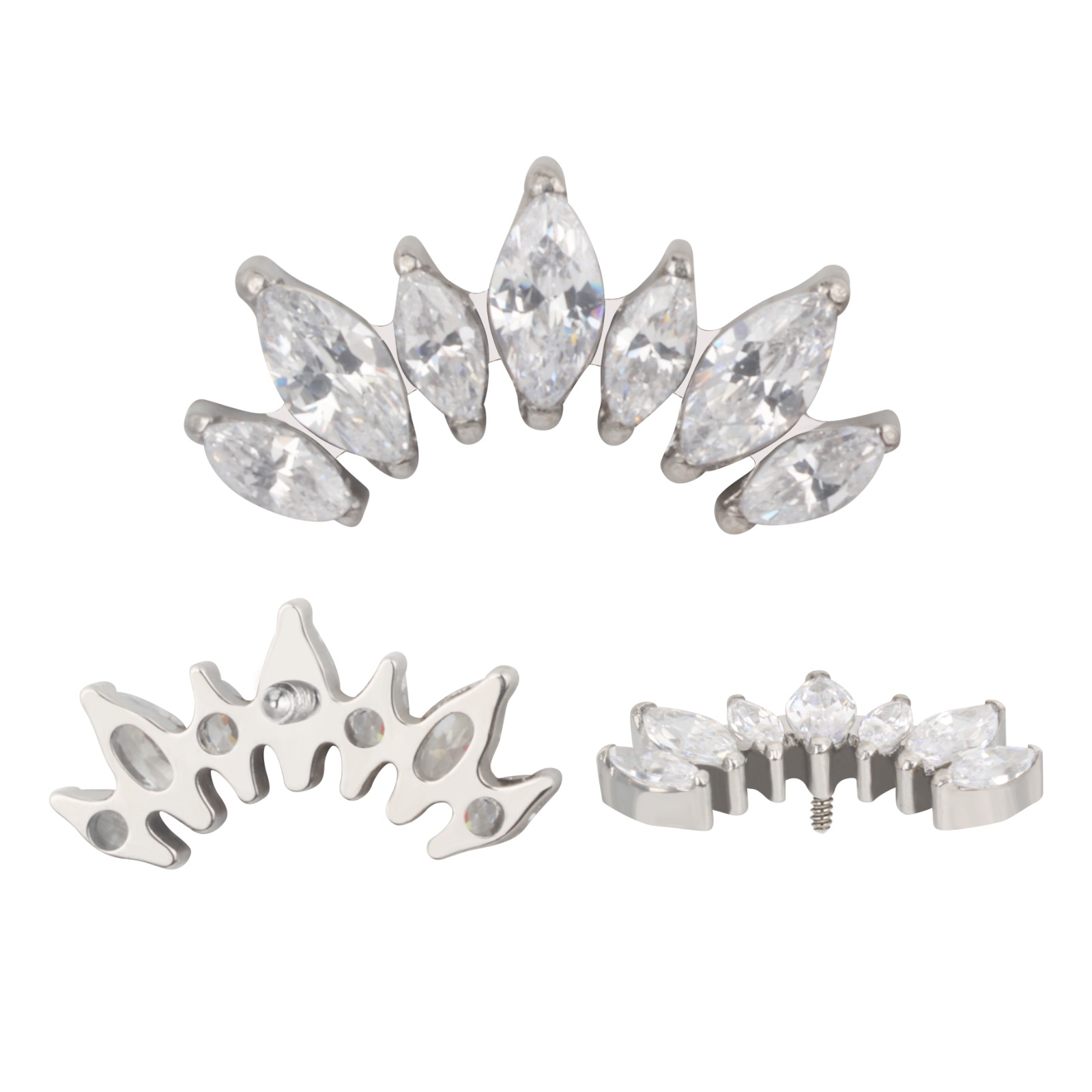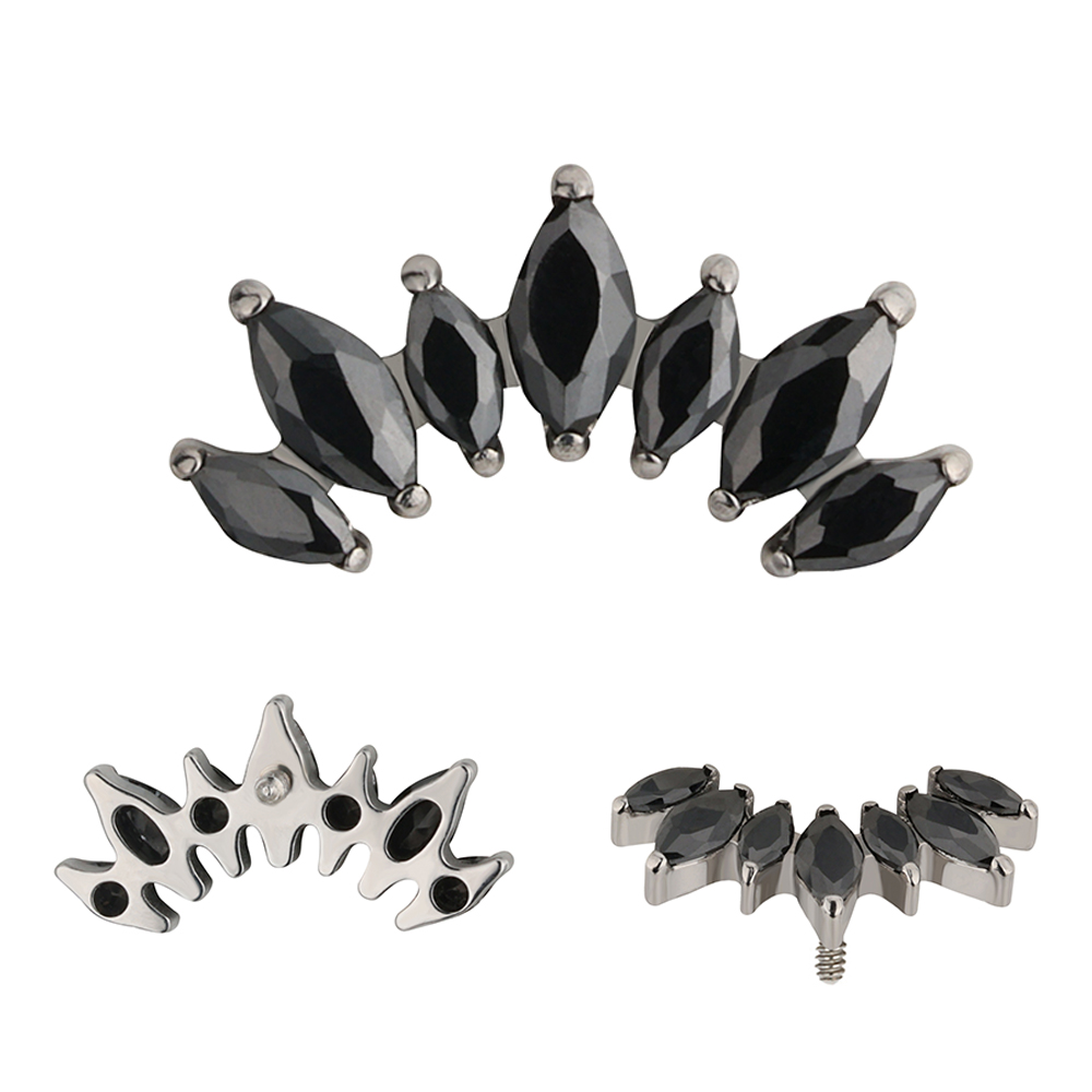 Nakrętka wykonana z tytanu najwyższej jakości ASTM F136 z trzema ozdobnymi cyrkoniami klasy premium.